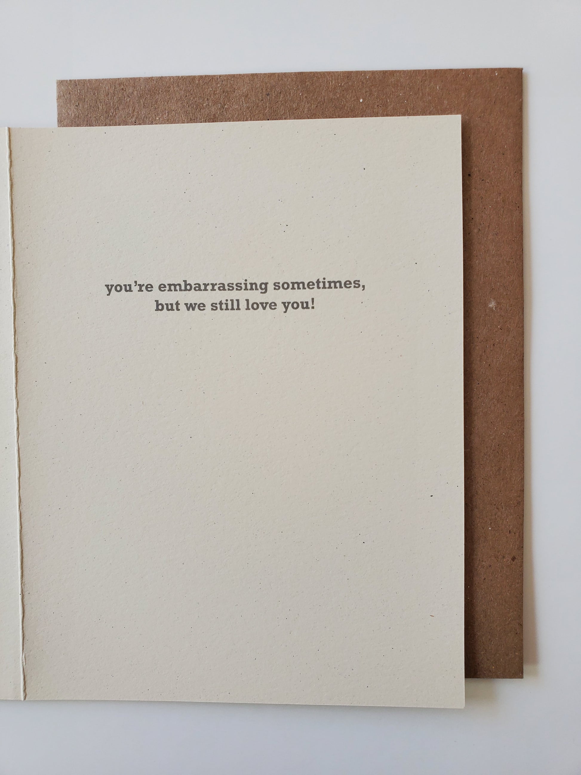 Cards are printed with veggie based inks on heavy cover stock containing post consumer recycled content.Single cards come with a 100% recycled envelope sealed in a biodegradable corn based clear bag.