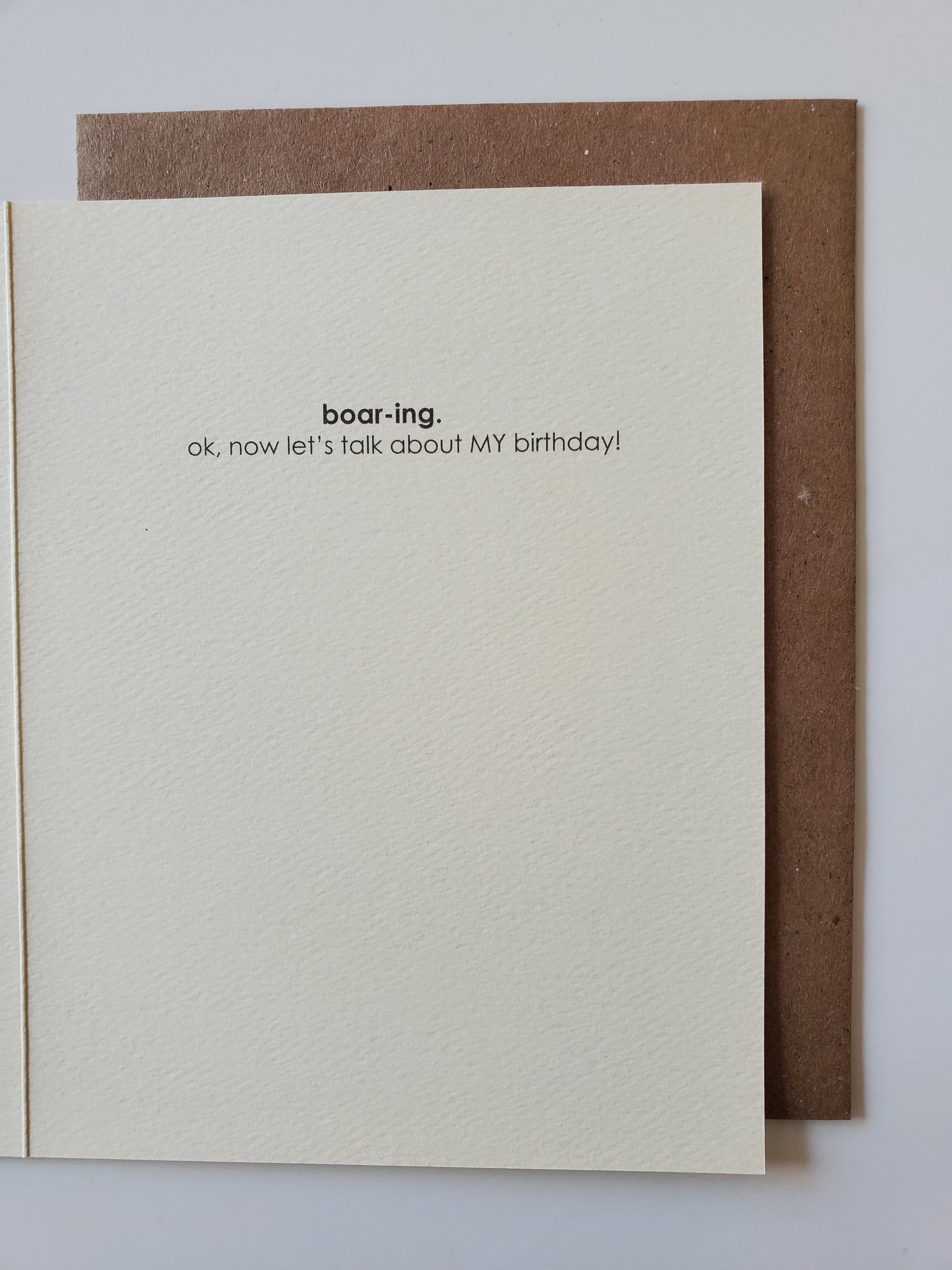 inside: boar-ing. ok, now let's talk about MY birthday!