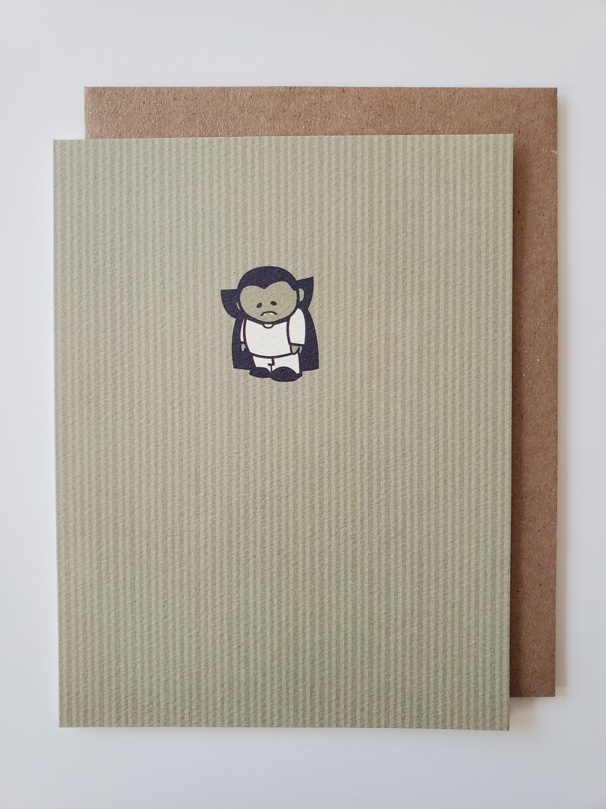 Cards are printed with veggie based inks on heavy cover stock containing post consumer recycled content.Single cards come with a 100% recycled envelope sealed in a biodegradable corn based clear bag.