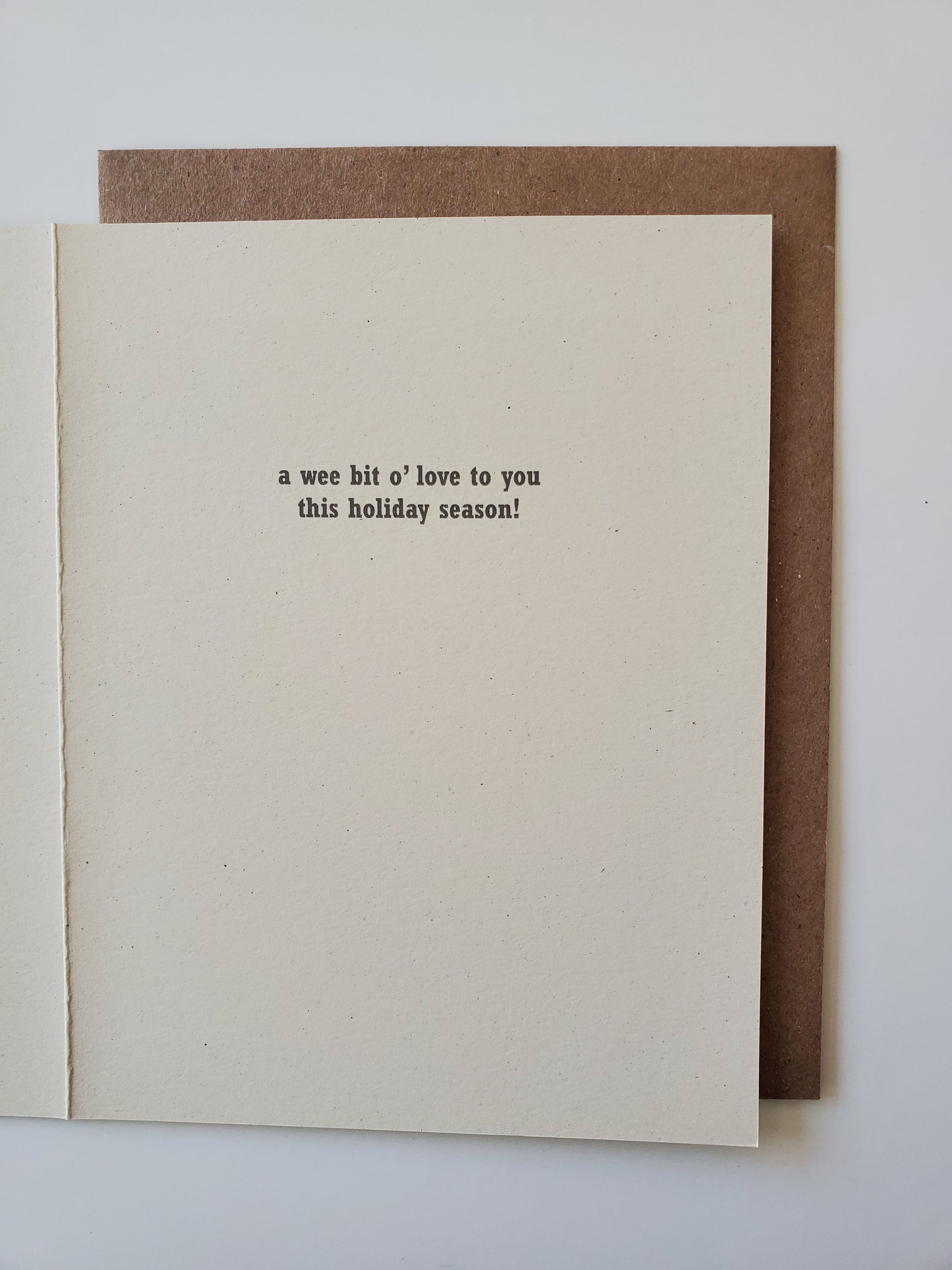 Cards are printed with veggie based inks on heavy cover stock containing post consumer recycled content.Single cards come with a 100% recycled envelope sealed in a biodegradable corn based clear bag.